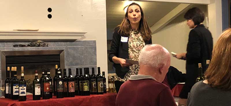 The next pour was a 2016 Chianti D.O.C.G. (link) that was aged in Stainless steel and was very fresh. This is a wine best enjoyed young & went very well with one of the salami selections. At this point they also introduced us to their cold-pressed Extra Virgin Olive Oil. So very smooth & light, it when very well with the bread we were served. While we discussed the difference between Chianti and Chianti Classico, Valentina got out a paper and started to make a diagram. "Our very own da Vinci," joked Chiara to a thunderous laugh from the audience. The presenters were having lots of fun answering questions from the members & having fun. Our next wine was something a bit more serious, a 2010 Nobile di Montepulciano D.O.C.G. (link). This wine was very nice with some bread and cheese.