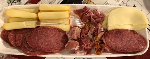 Appetizers: Tuscan Salami, Cheese, and Bruschetta (bread with olive oil).